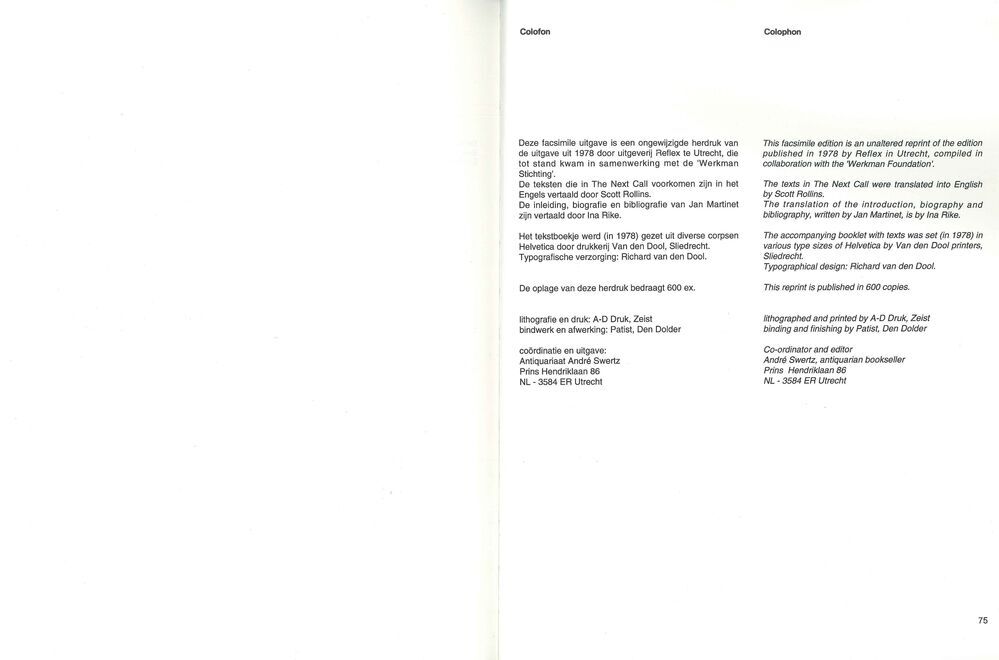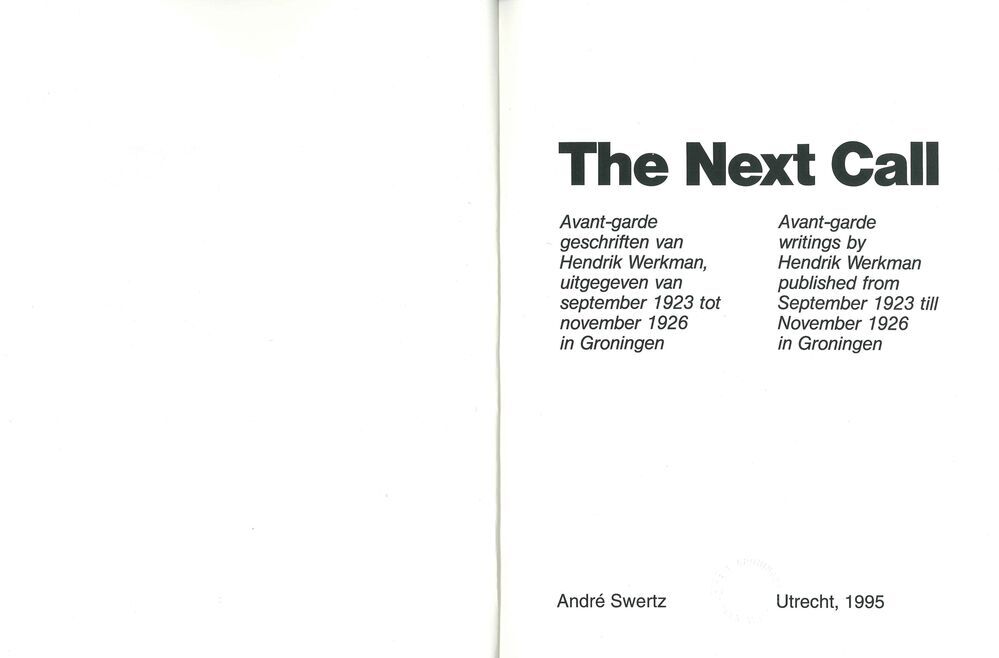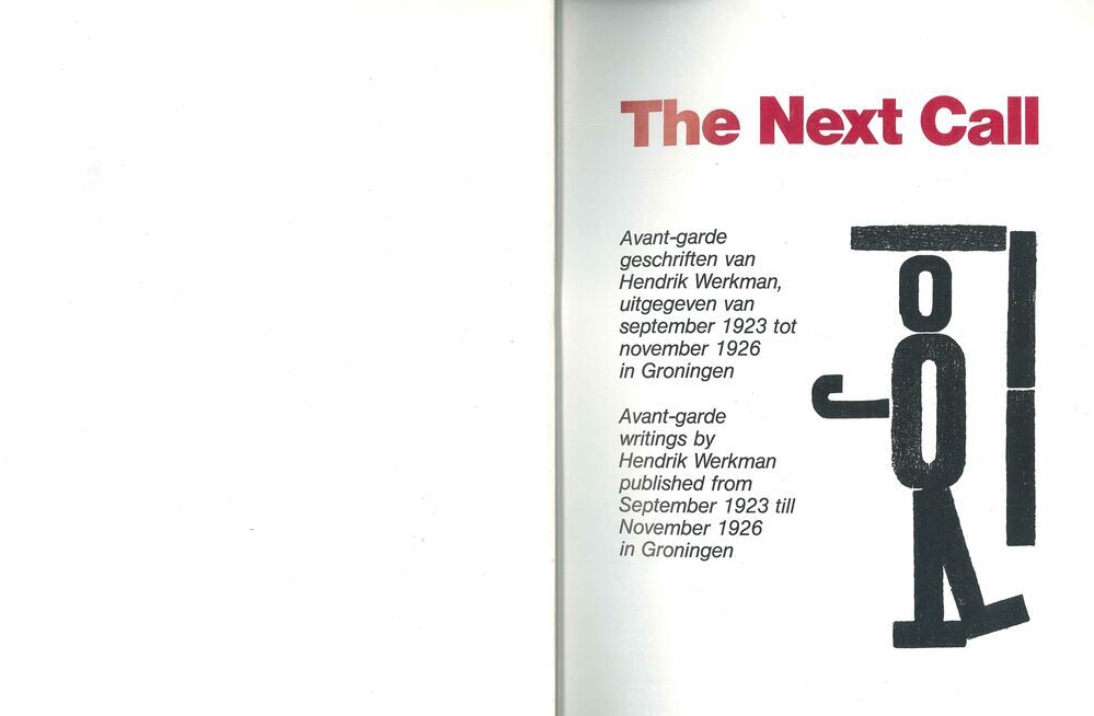 TitelThe Next Call : avant-garde geschiften van Hendrik Werkman, uitgegeven van 1923 tot november 1926 in Groningen = avant-garde writings by Hendrik Werkman published from September 1923 till November 1926 in Groningen