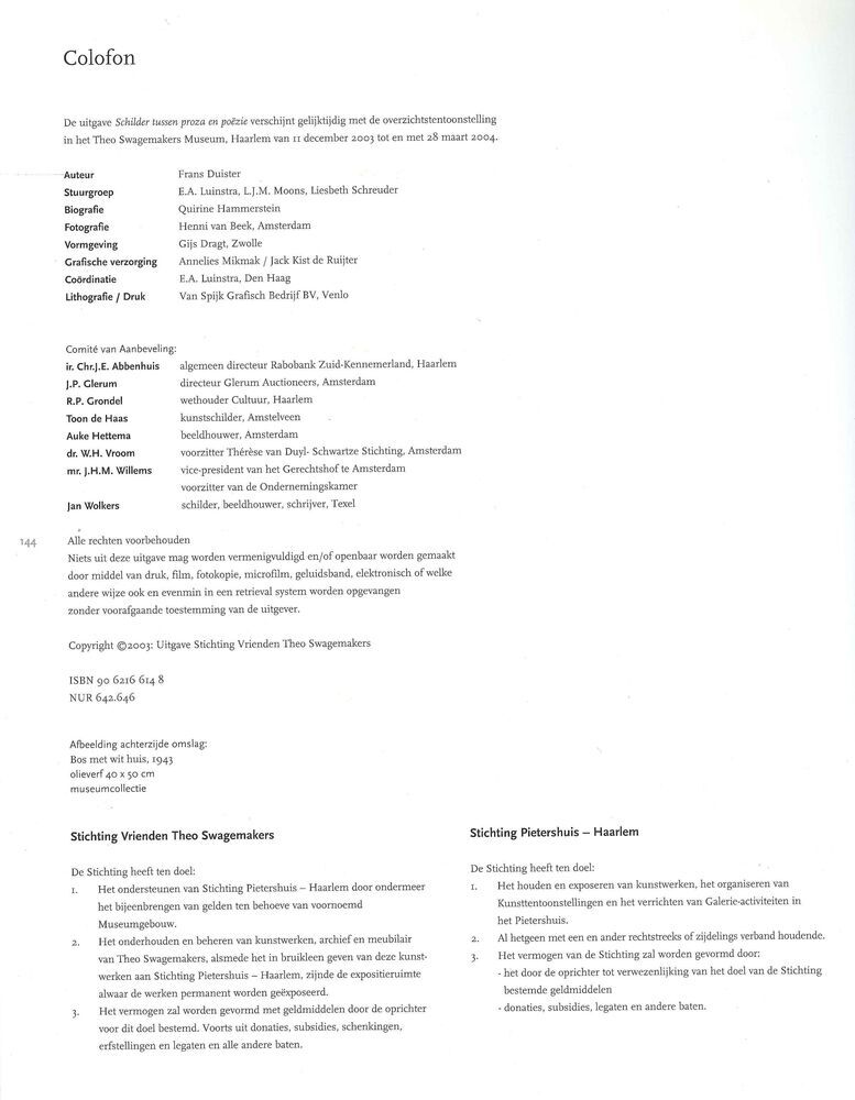 TitelTheo Swagemakers 1898 - 1994, schilder tussen proza en poëzie