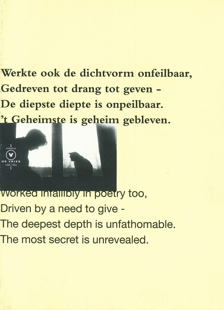 TitelHendrik de Vries 1896-1989 - 't geheimste is geheim gebleven = the most secret is unrevealed