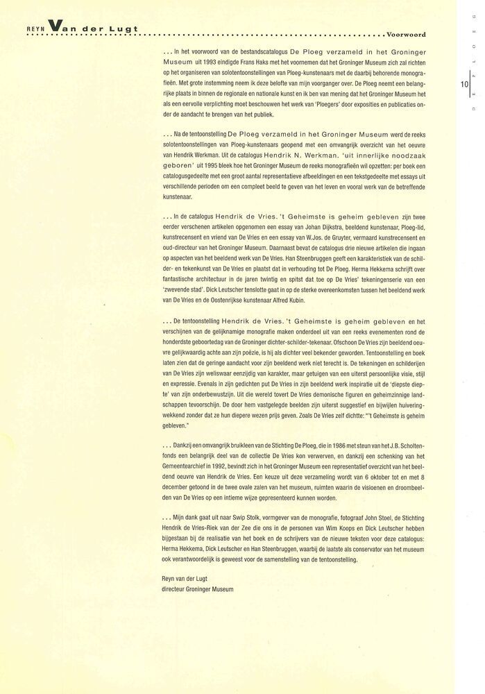 Persoonstrefwoord Hendrik de Vries, De Ploeg