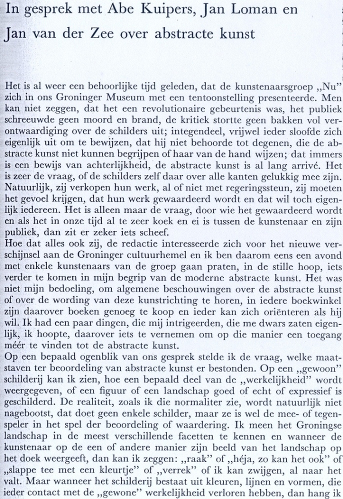 In gesprek met Abe Kuipers, Jan Loman en Jan van der Zee over abstracte kunst.