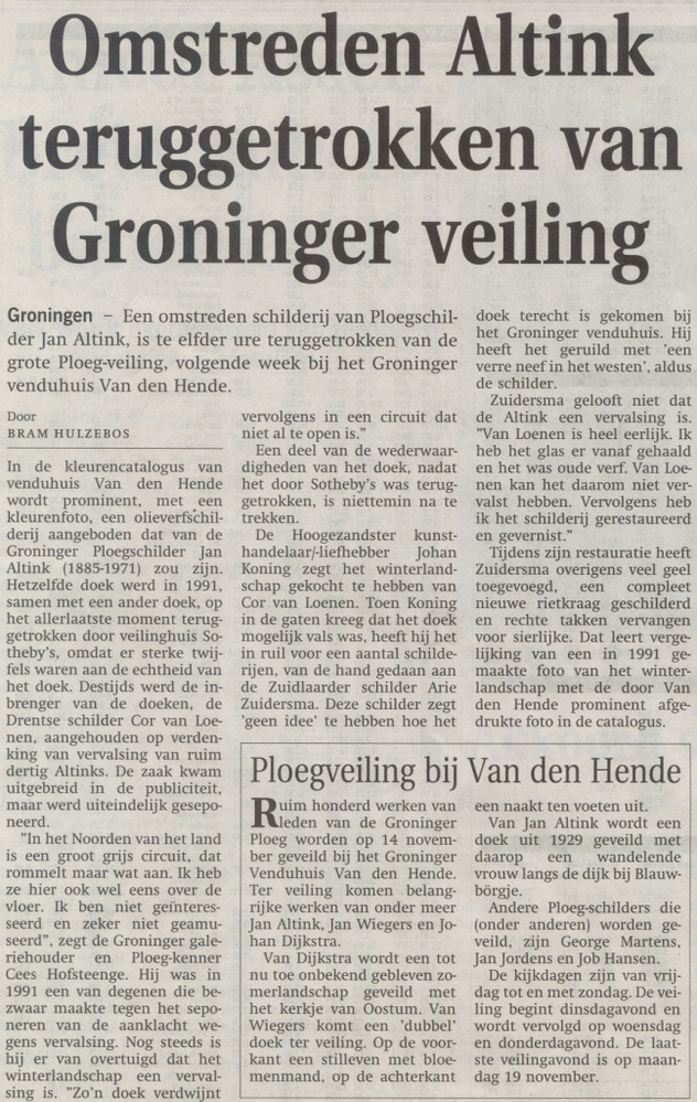 TitelOmstreden Altink teruggetrokken van Groninger veiling