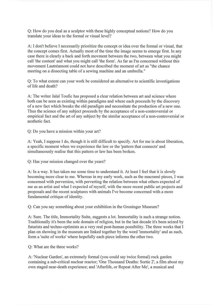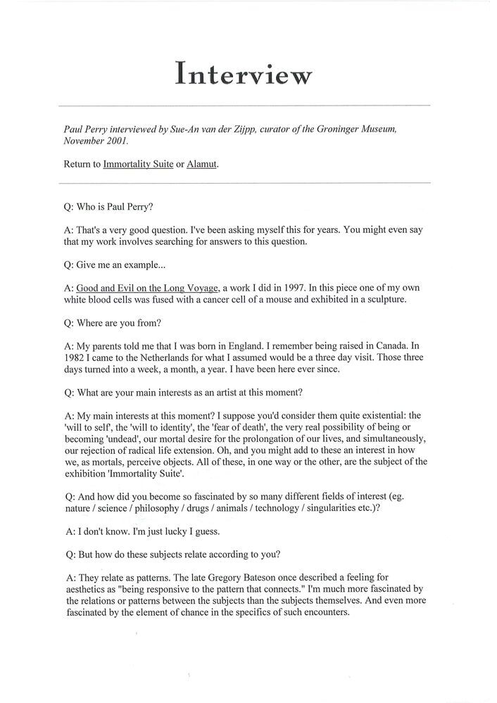Paul Perry interviewed by Sue-An van der Zijpp, curator of the Groninger Museum, November 2001