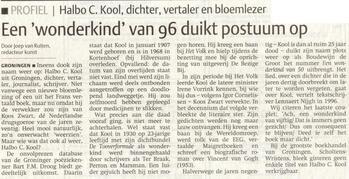TitelEen 'wonderkind' van 96 duikt postuum op : Halbo C. Kool, dichter, vertaler en bloemlezer