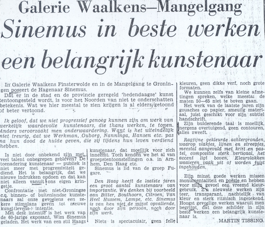 Sinemus in beste werken een belangrijk kunstenaar : Galerie Waalkens-Mangelgang