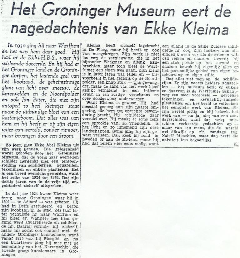 TitelHet Groninger Museum eert de nagedachtenis van Ekke Kleima