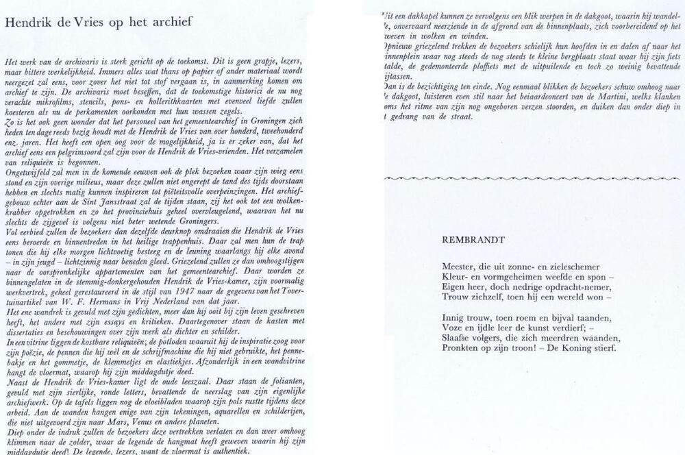TitelHendrik de Vries op het archief