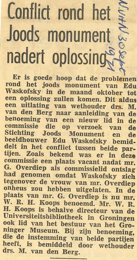 Conflict rond het Joods Monument nadert oplossing.